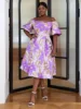 Tejiri V Neck Lantern Sleeve Print Dress